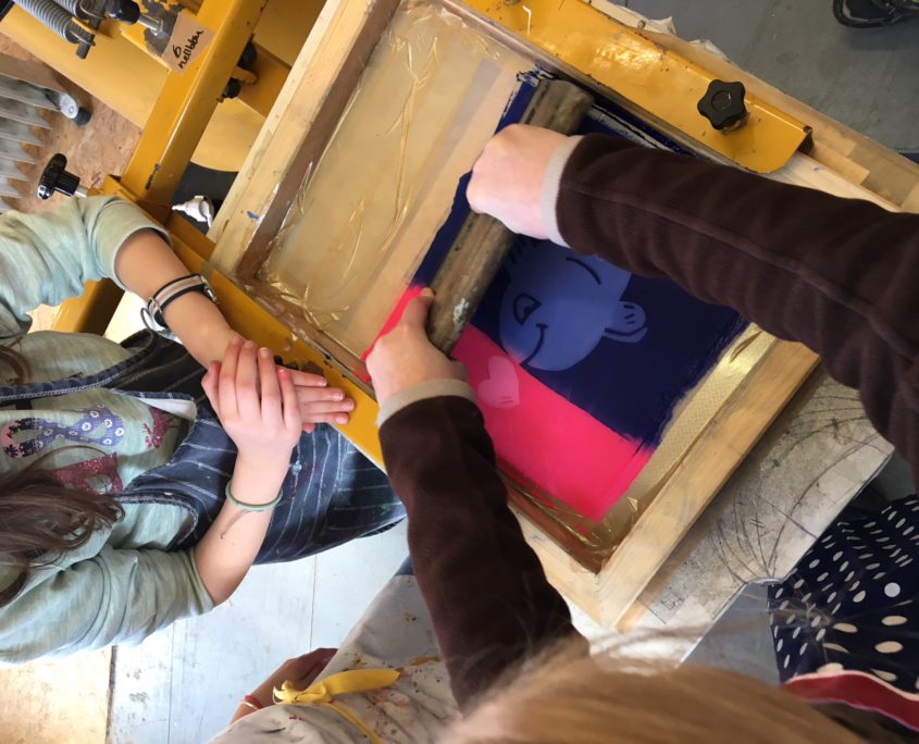 In dem Siebdruck Workshop könnt ihr Euer eigenes Motiv auf einen Träger, wie z.B. ein T-Shirt oder Leinentaschen selbst drucken.