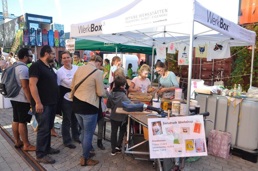 In dem Siebdruck Workshop mit mobilen Druckgeräten könnt ihr Euer eigenes Motiv auf einen Träger, wie z.B. ein T-Shirt oder Leinentaschen selbst drucken. Mit der Schnittschablonen-Technik kann man schnell und einfach das selbst gezeichnete, direkt mit der Hand (Schere, Cutter, …) ausschneiden und so die Papierschablone erstellen und kann dann in jeder beliebigen Farbe einmal als Unikat gedruckt werden. Auch sehr komplexe Motive lassen sich mit diesem Verfahren verwirklichen. Alles, was man sich traut auszuschneiden, lässt sich auch drucken.