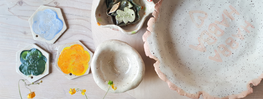 – Wir formen erstmal zusammen einen kleinen Schüssel, um uns mit dem Ton zu befreunden. Danach kann man die eigene Ideen zur Wirklichkeit machen, mit meine Hilfe natürlich. In den 2 Stunden schafft man erfahrungsgemäß entweder 1 Größeres Objekt, oder 2 kleinere Objekte. Schaue gerne kurz bei Pinterest vorbei falls du noch nicht sicher bist was du kreiren willst, um ein Paar Ideen zu sammeln, damit du kein Zeit fürs lange überlegen verlierst.