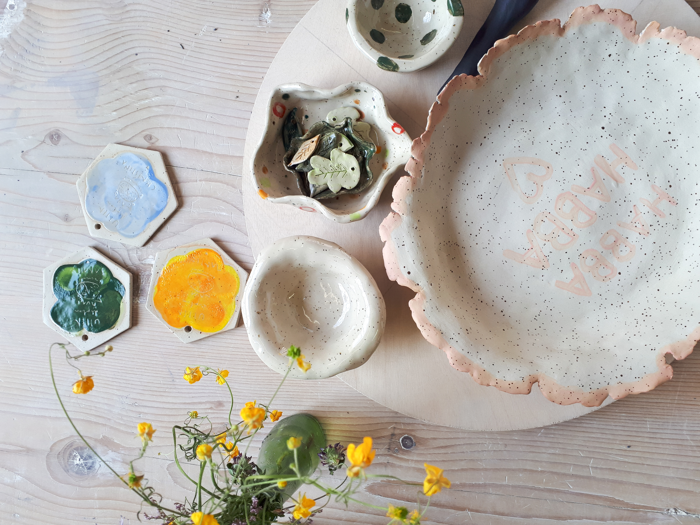 – Wir formen erstmal zusammen einen kleinen Schüssel, um uns mit dem Ton zu befreunden. Danach kann man die eigene Ideen zur Wirklichkeit machen, mit meine Hilfe natürlich. In den 2 Stunden schafft man erfahrungsgemäß entweder 1 Größeres Objekt, oder 2 kleinere Objekte. Schaue gerne kurz bei Pinterest vorbei falls du noch nicht sicher bist was du kreiren willst, um ein Paar Ideen zu sammeln, damit du kein Zeit fürs lange überlegen verlierst.