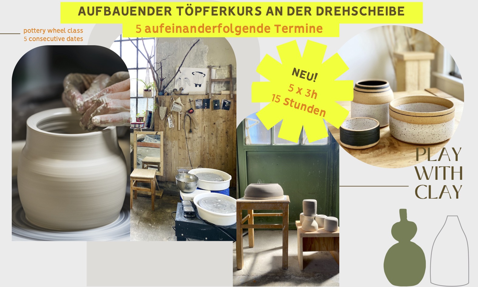 Dieser Kurs gibt Dir die Möglichkeit das Drehen auf der Drehscheibe in einer entspannten Atmosphäre auszuprobieren, kennenzulernen und vor allem zu vertiefen!
