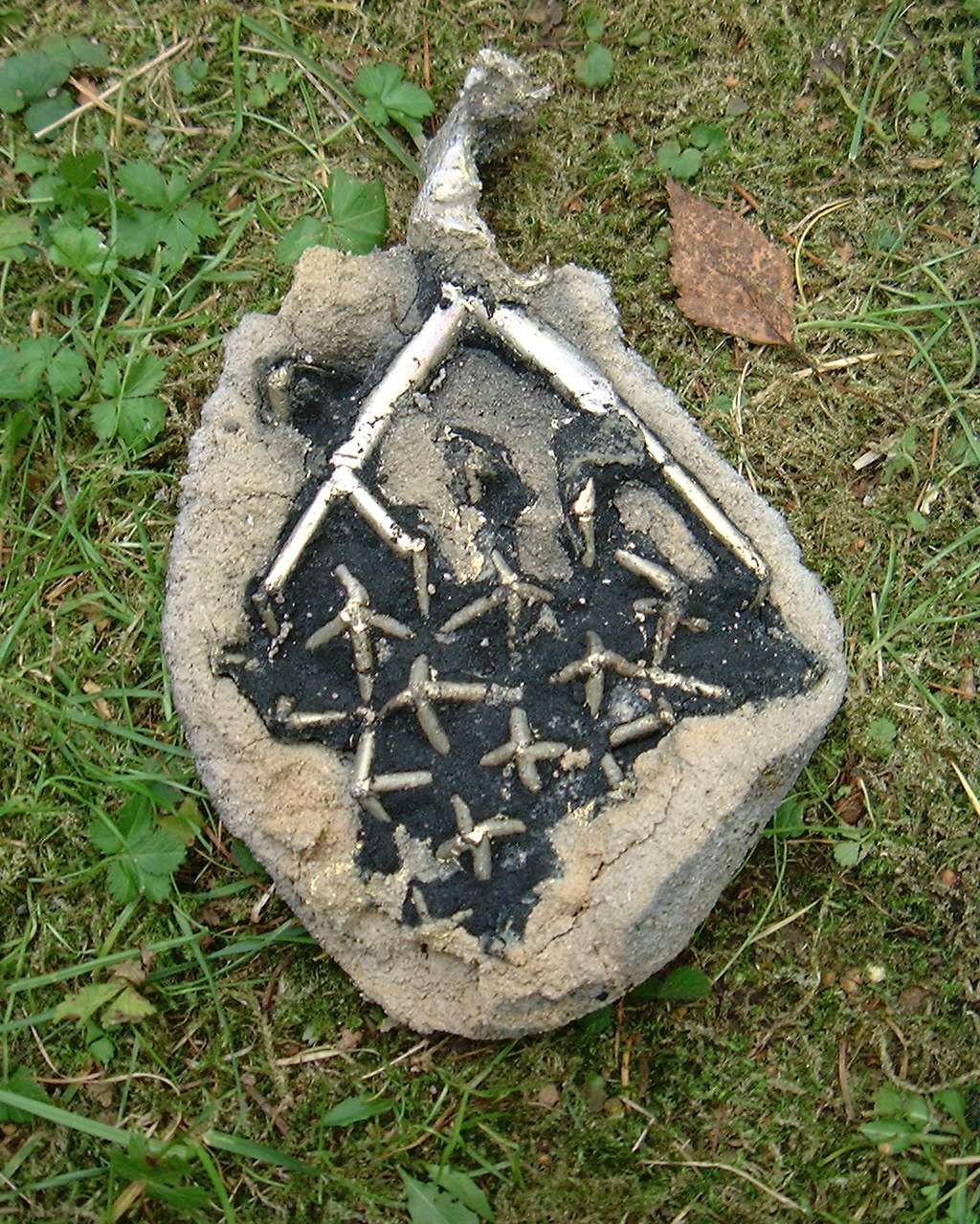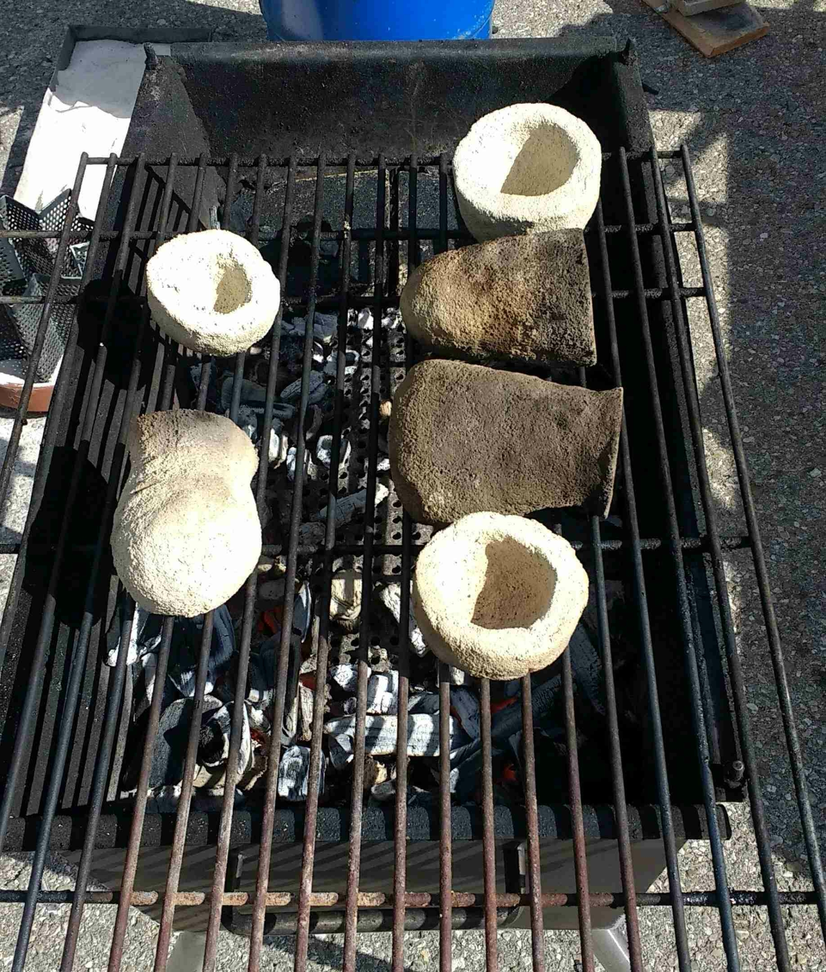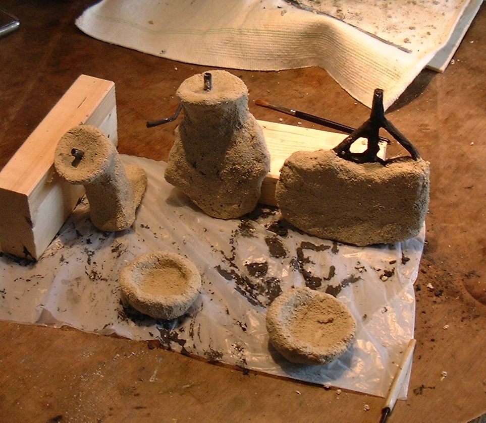 Einformmaterialien (Schamotte, Bentonit, Holzkohlemehl).