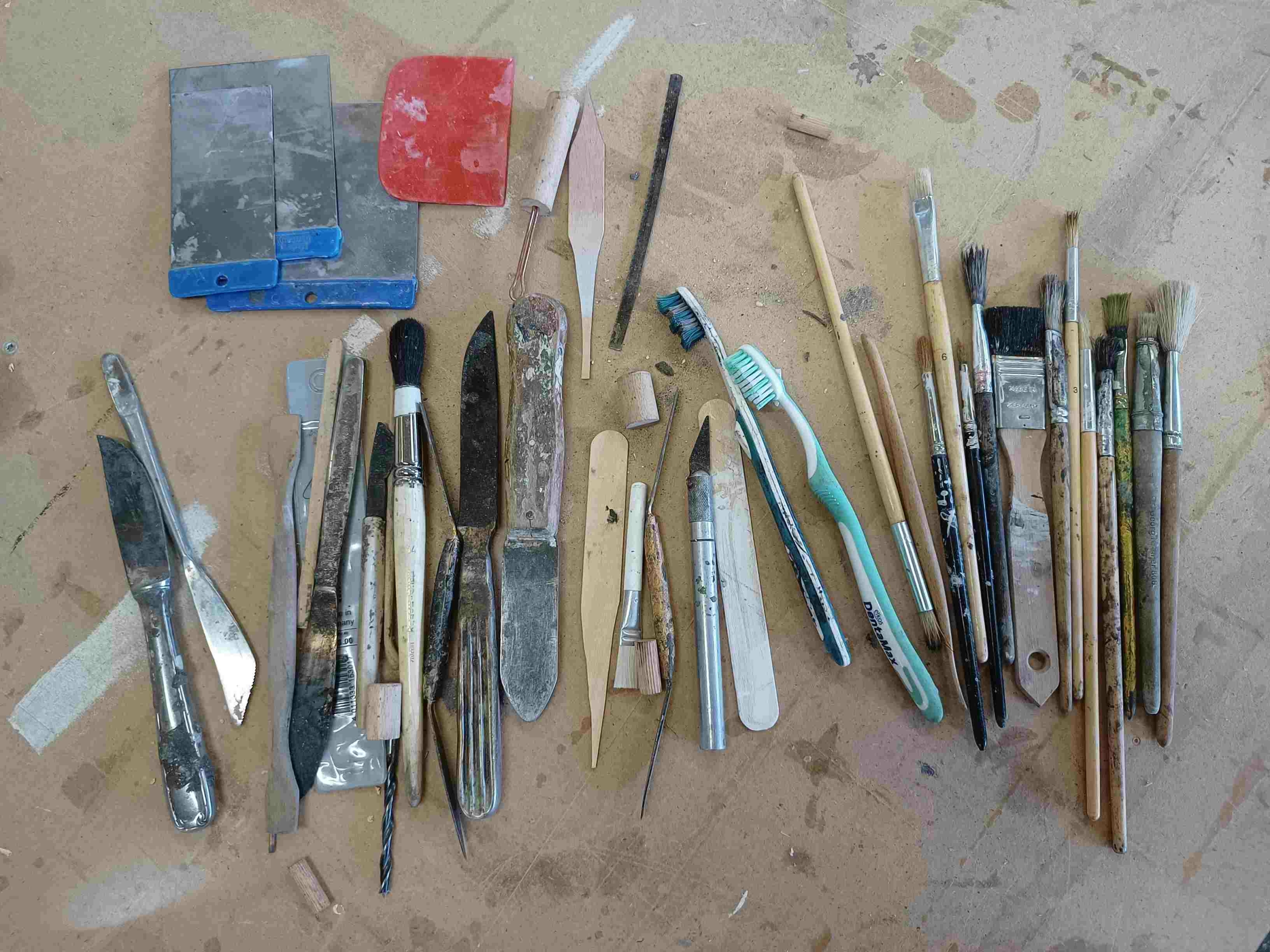 Modellierwerkzeug (Metallspachtel, Holzspachtel), Spiritusbrenner, Brennspiritus oder eine Kerze. Evt. Gasbrenner mit Kartusche.